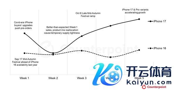 商场谈判机构Counterpoint Research最新发布的《中国智高东谈主机周度销量跟踪阐明》败露,iPhone 17系列与小米17系列上市首月发挥亮眼,离别成为鼓励两品牌在中国商场销量增长的中枢能源。