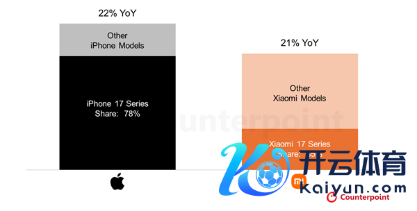 Counterpoint阐明中提到,iPhone 17与小米17系列的热销,也响应出中国高端智高东谈主机商场竞争从\"参数比拼\"转向\"价值与玄虚体验\"的趋势,头部品牌通过精确家具战术与档期布局,执续牢固商场份额。
