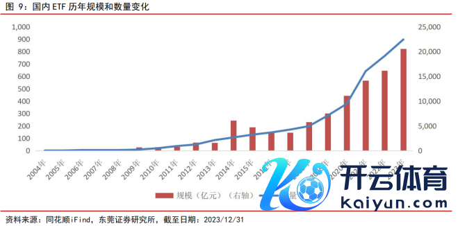 截止2023年底,ETF鸿沟超越2万亿元。尤其是从2019年之后捏续火爆,现在已成为投资者参与职权阛阓最蹙迫的器具之一。