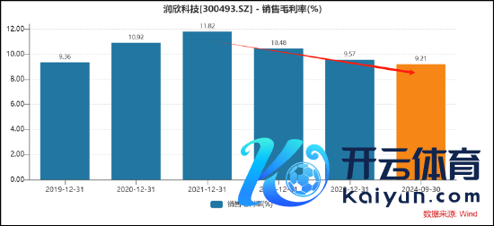 需要指出的是,公司频年毛利率呈现出抓续下滑态势,毛利率由最高点的11.82%下跌至2023年的9.57%,2024年三季报毛利率进一步下跌至9.21%。