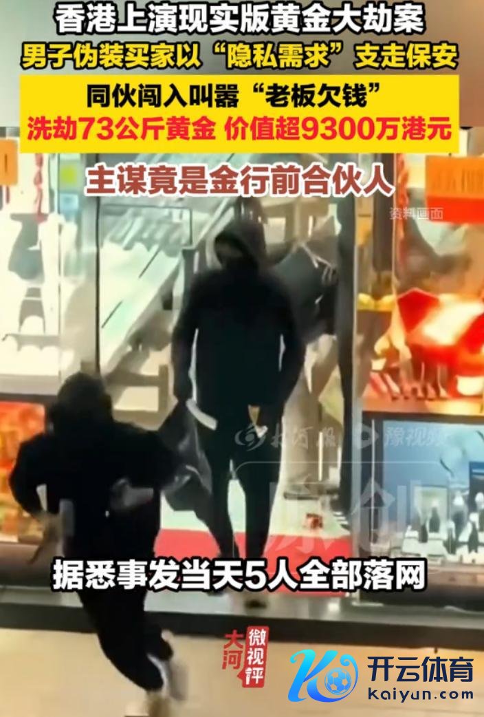 据香港警方透露,案发时期是在3月20日。其时,别称男人伪装买家以秘密需求为由,支走金行保安,三名同伙立马闯入,要消金行雇主欠钱,并把金条狂放装箱。另有一东谈主在外放风,笔直后5东谈主开两辆车赶快兔脱。