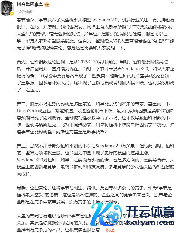 抖音集团李亮:炒作“字节是恒科的最大空头”很谬妄也很坏心抖音集团李亮:炒作“字节是恒科的最大空头”很谬妄也很坏心