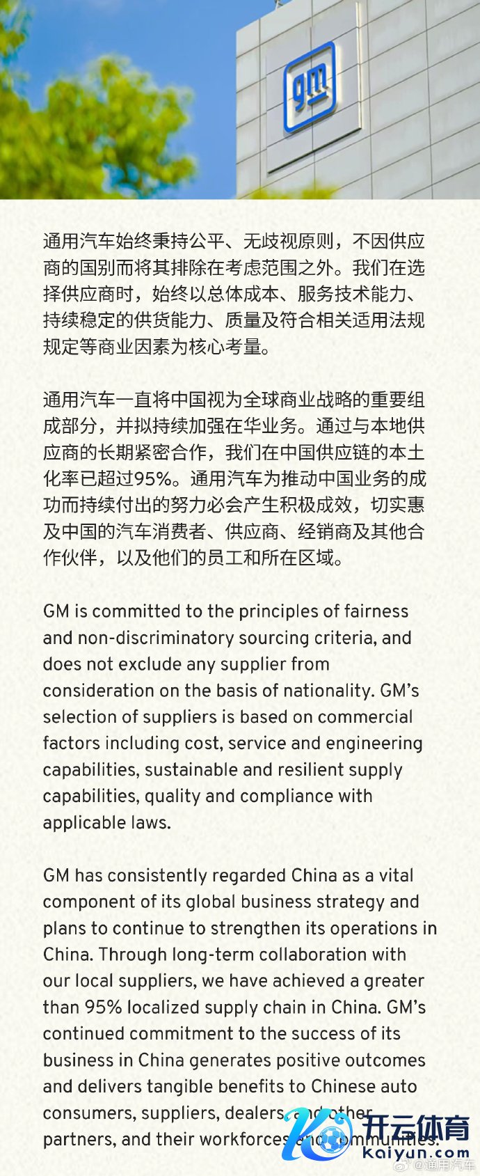 通用汽车:公司在中国供应链的原土化率已跳跃95%通用汽车:公司在中国供应链的原土化率已跳跃95%