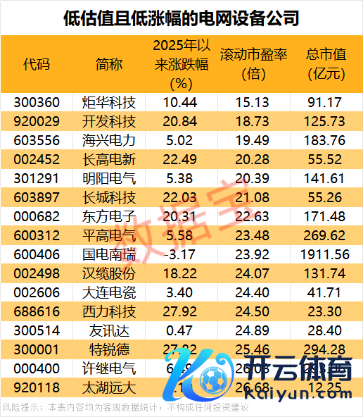 低估值且低涨幅的电网拓荒公司出炉开yun体育网低估值且低涨幅的电网拓荒公司出炉