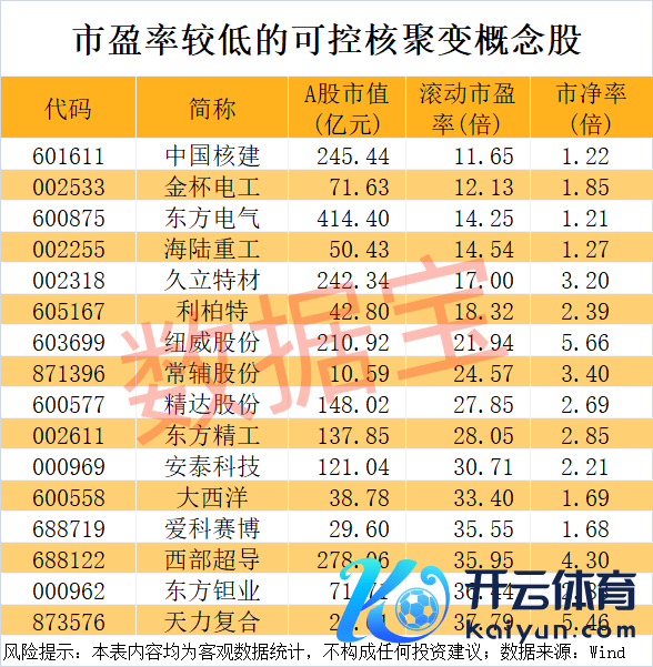 估值水平日面,截止1月27日收盘,10股逶迤市盈率低于30倍云开体育,包括中国核建、金杯电工、东方电气、海陆重工、久立特材等。11股市净率低于2倍,如雄伟特材、东方电气、中国核建、海陆重工、白银有色等。
