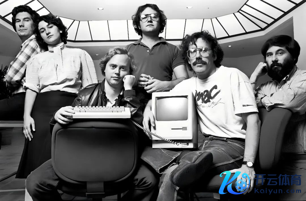 1984年,Mac首创团队:乔治·克罗、乔安娜·霍夫曼、伯勒尔·史小姐、安迪·赫兹菲尔德、比尔·阿特金森、杰里·马诺克(自左至右)