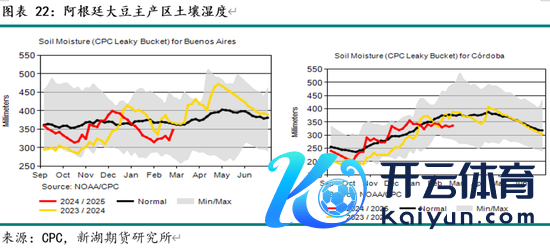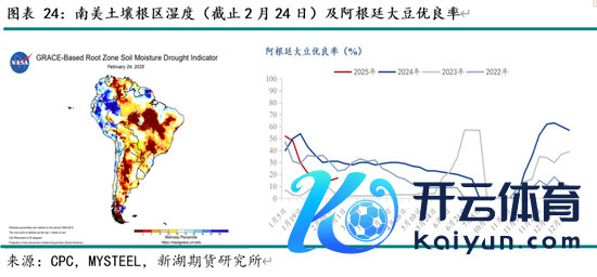 2月阿根廷部分地区仍有干旱,但跟着降雨增多,最大主产州布宜诺斯艾利斯省墒情不停改善。天气预告炫夸,下周该州仍将有较多降雨,料到旱情将进一步缓解。其余省份或者墒情尚可,或者产量占比较小。总体来看,前期干旱对阿根廷大豆24/25年度产量影响依旧有限。在巴西大豆产量连接创历史新高、弱拉尼娜进一步裁减配景下,阿根廷大豆对南好意思大豆产量形貌影响较小。